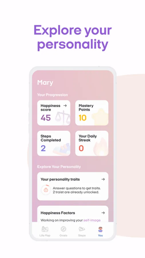 Helpsome is a highly personal experience. On your journey, it will give you important insights about your personality and happiness.