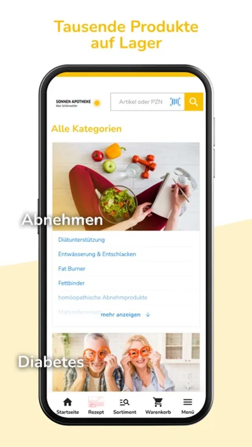 Wir bieten Ihnen über die App unser gesamtes Sortiment. Nicht sofort verfügbare Produkte bestellen wir für Sie und machen Sie in der Regel bis zum nächsten Werktag abholbereit. Gerne liefern wir Ihnen Ihre Bestellung auch bis zur Haustür.