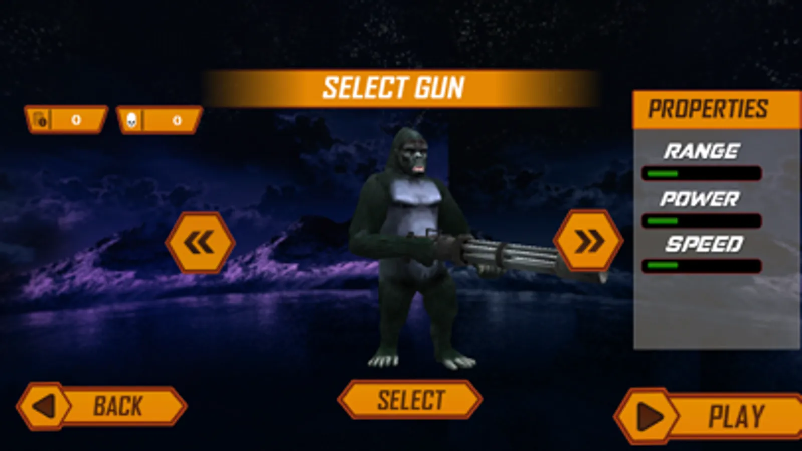 - Three different thrilling/entertaining gorilla shooting levels