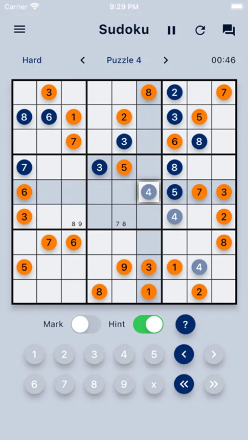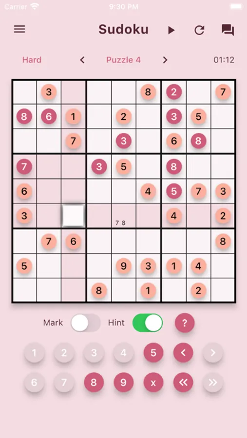 A Sudoku game that both adults and children like, there are four levels of difficulty: Easy, Normal, Hard, and Challenging, with a total of 124 puzzles. In addition, you can create your own puzzles without limit.