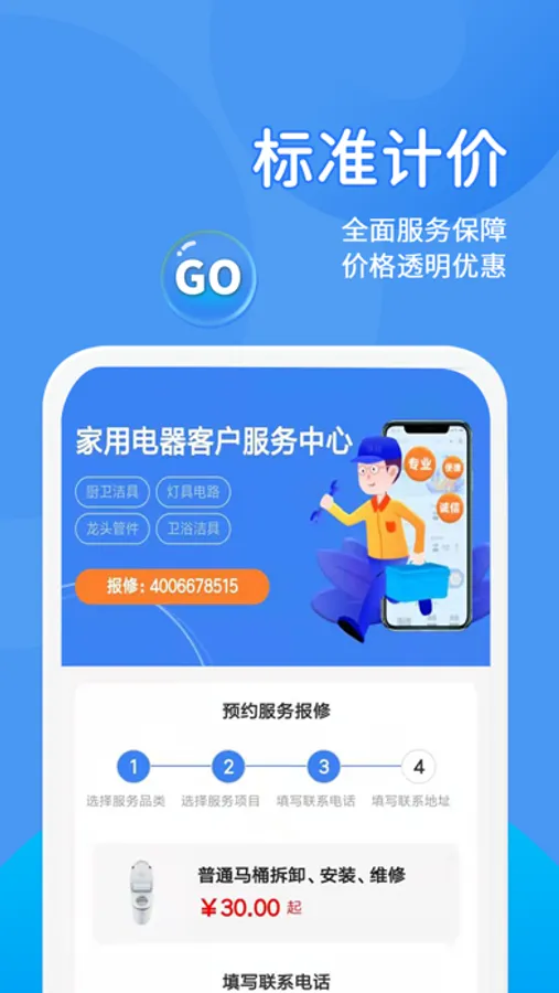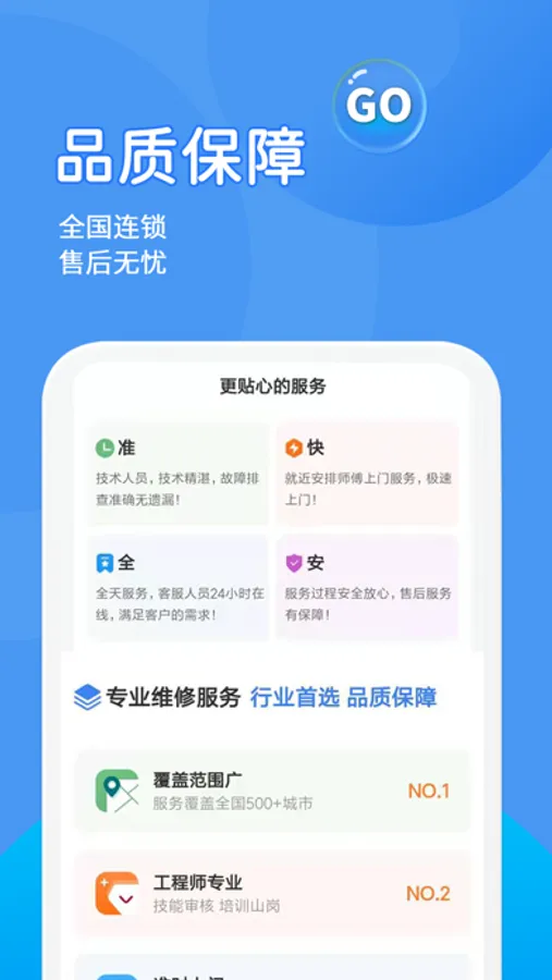 【线上预约,方便快捷】用户可通过APP一键预约下单,极速上门维修;