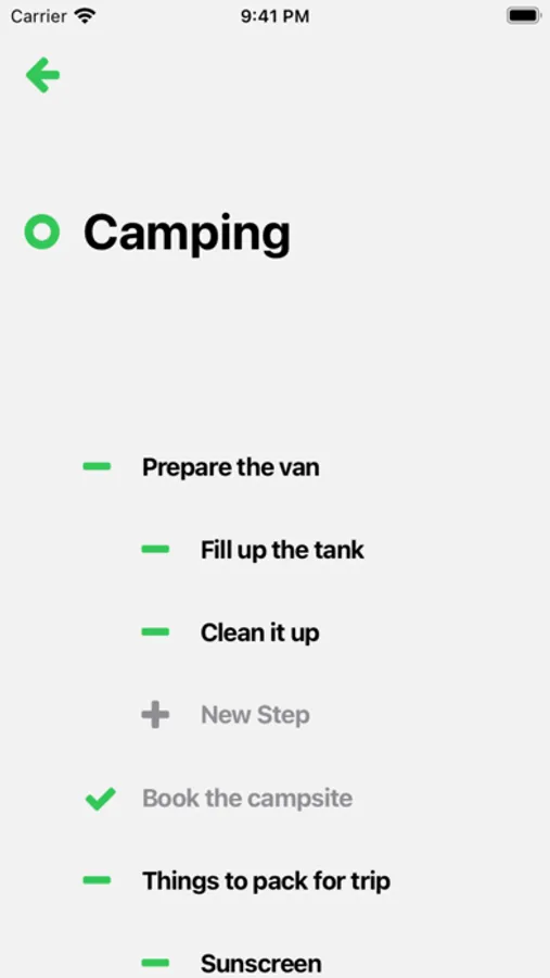 • Completed tasks and steps will automatically be removed once you leave a list.
