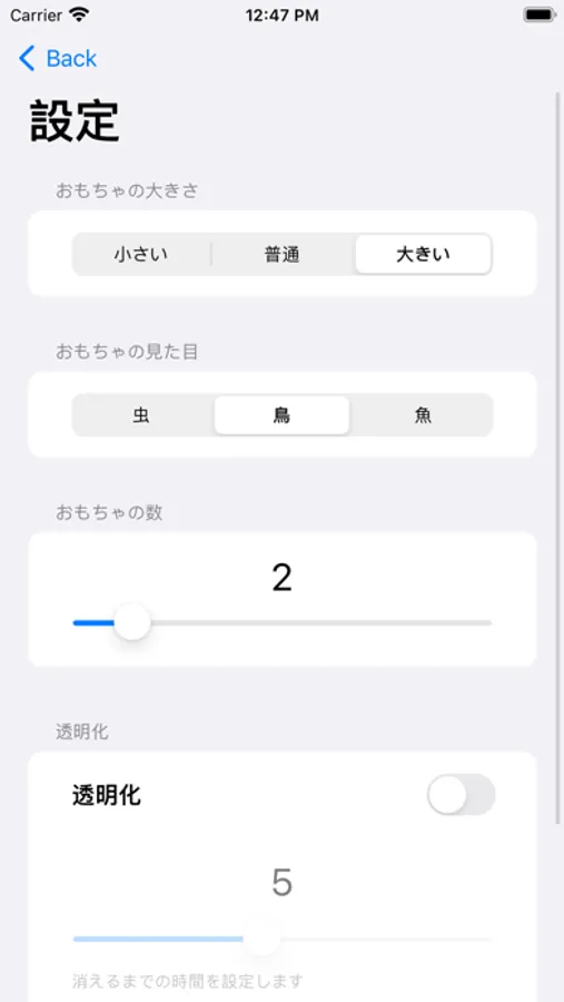 1.歯車マークよりおもちゃの大きさ、見た目、個数を設定します。
