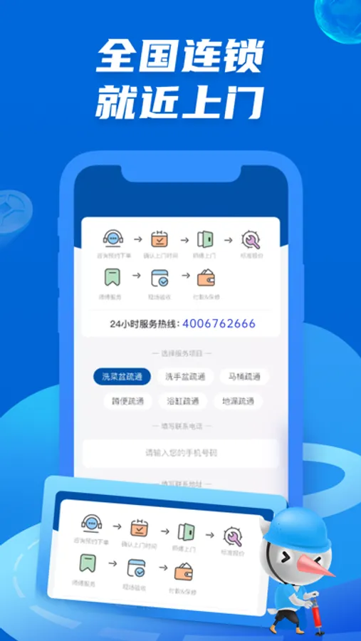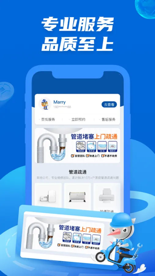 啄木鸟管道疏通APP提供管道疏通、管道维修、疏通下水道、防水堵漏为一体的综合性服务,专业、优质、有保障的生活服务;