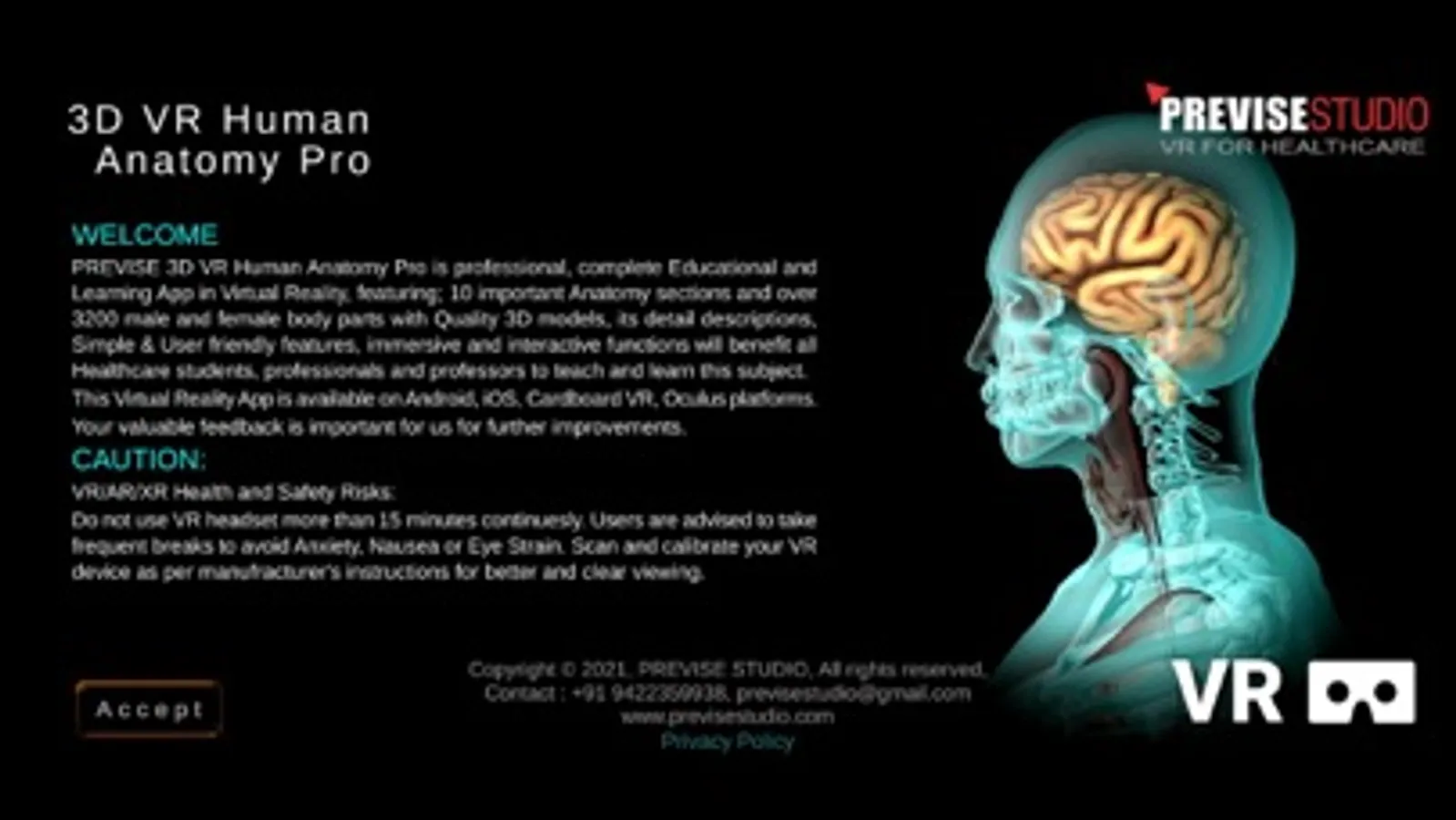 The details of each section help to understand the amazing and interesting facts about our human body and gives amazing realistic-immersive learning experience in Virtual Reality for medical students who are looking forward to make their career as Healthcare specialist, Medical Research Scientist or Bio-medical Engineering. This App is also useful for professional healthcare specialist and surgeons in the field of Neurology, Cardiovascular, Physio-therapist, Orthopedic, Nursing and Bio-Medical engineers to understand Human Body. Professionals can use this app to explain and communicate medical issues, problems and treatment with patients in Virtual Reality.
