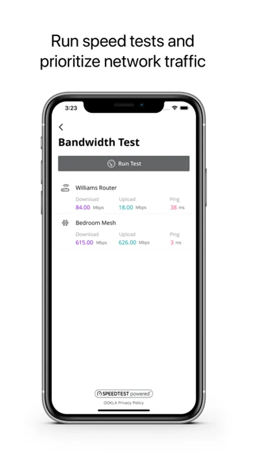 Control your smart home experience with IQ Fiber Smart WiFi. Manage your network by assigning devices priority, implementing parental controls, and creating your own guest networks. View network usage, perform speed tests, and manage your SSID for total control.