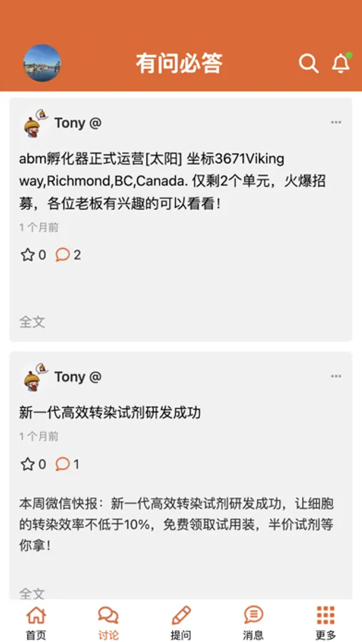 有问必答有求必应是一个专门针对生命科学实验室和生物科技公司研发人员开发的一个新型实用APP。他们在日常实验室工作中常常碰到实验疑难,需要及时获得解决方法。注册会员后可以在APP中提出问题,其他会员都可以给出自己的答案,实时地帮助提问题的会员及时解决实验问题。同时,回答问题的会员根据答案的好坏可得到APP积分,兑换自己心爱的礼品。
