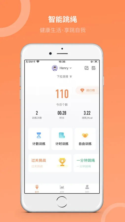 主要功能介绍【运动跳绳】倒计数,倒计时,自由跳。多种跳绳模式自由选择。