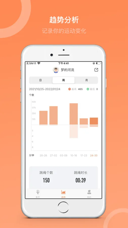 【运动趋势】分析您的跳绳数据趋势变化,多维度查看运动量变化。