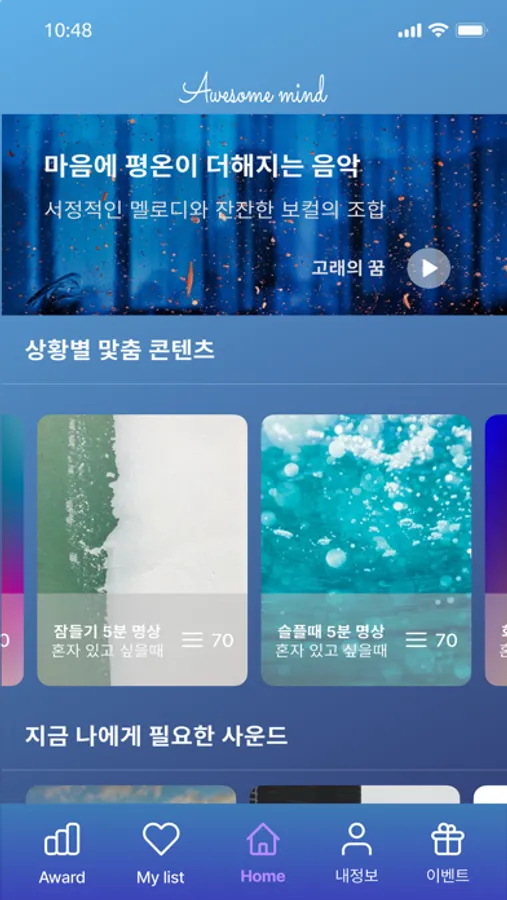 어썸 마인드와 함께 선택한 음악을 들으며 멘탈 테라피를 즐겨보세요!