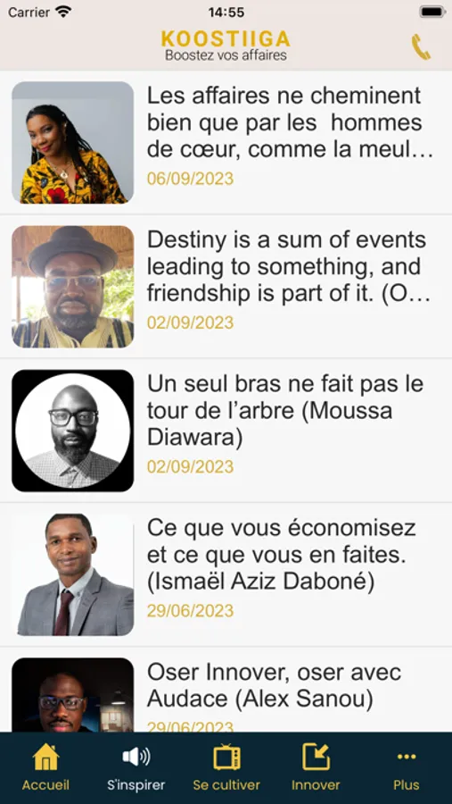 Koostiiga APP est la 1ère application mobile 100% dédiée à l’entrepreneuriat et adaptée à la réalité des entrepeneurs d'inspiration africaine. Elle est accessible aux entrepreneurs partout et en tout temps. L'application mobile Koostiiga nourrit l'inspiration, améliore la culture affaires et favorise l'innovation grâce aux technologies adaptées.