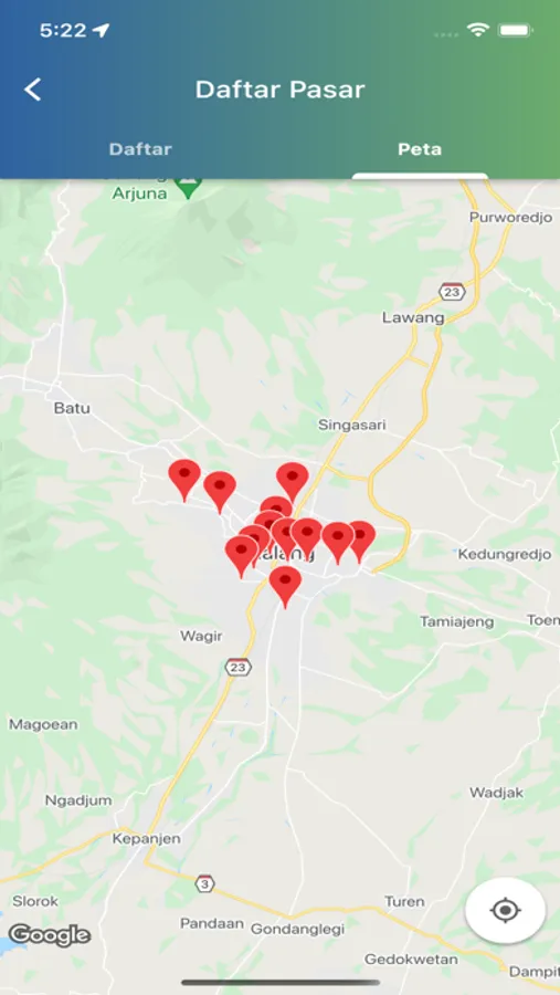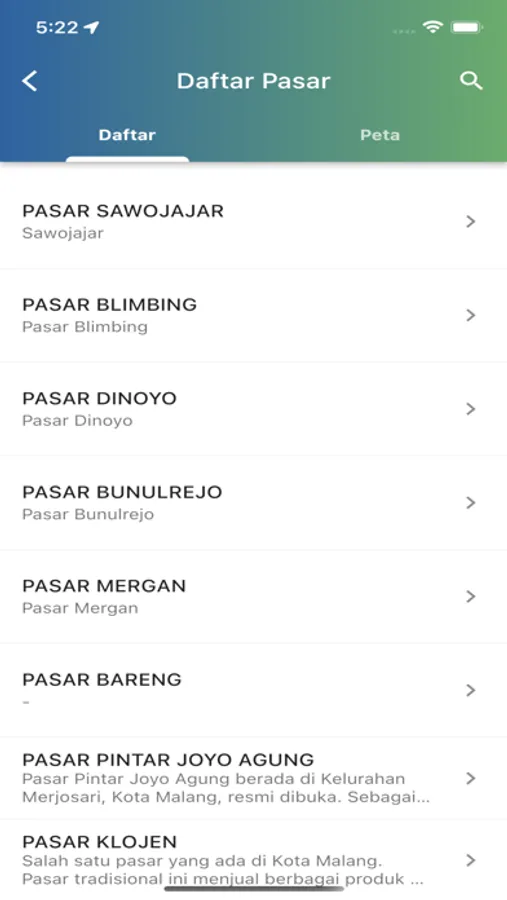 Menampilkan data pasar yang berada didaerah pengelola/petugas, dinas provinsi, dinas kabupaten/Kota yang di tampilkan pada Maps yang bisa di lihat titik pasar langsung dari maps.