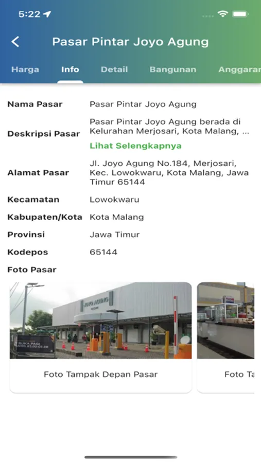 Menmpilkan Data Pasar yang berada di daerah pengelola/petugas pasar yang di mana mendapatkan informasi detail pasar, harga komoditi, data bangunan pasar, data anggaran pasar.