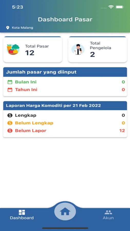 1. Dashboard Pasar