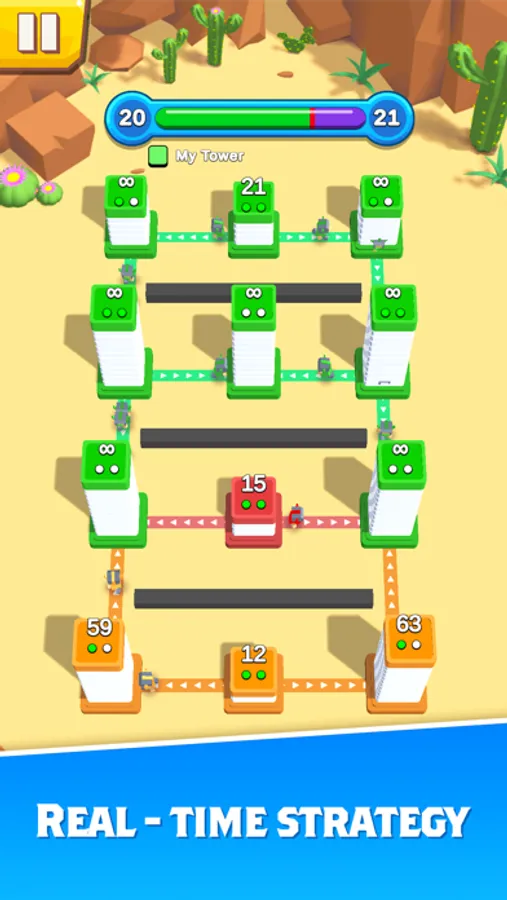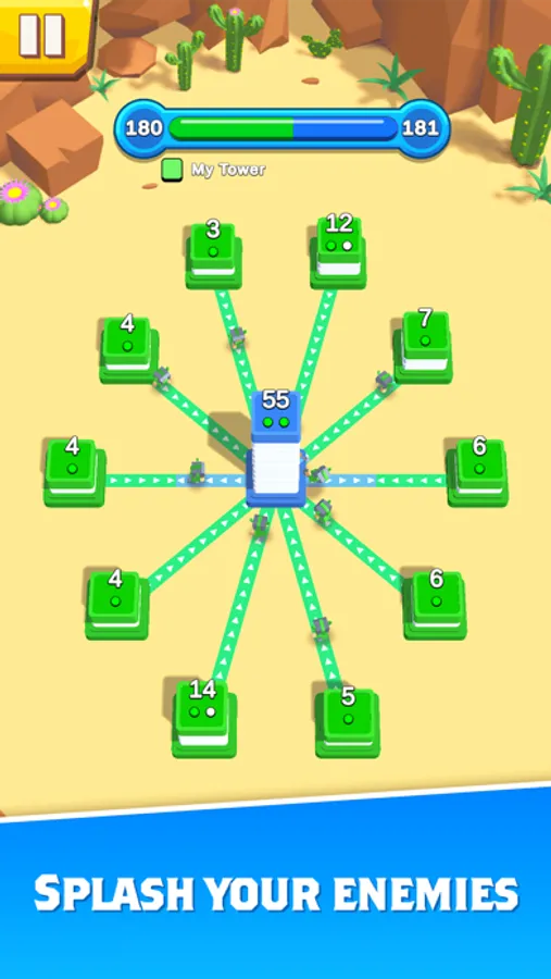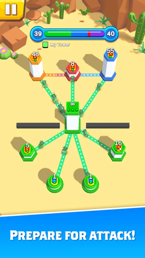 This battle simulator demands tactics, not power. Let's challenge yourself! You are to use your brain, not your muscles. Become a master conquer tower logic game, solving these tactical puzzles! You will have a lot of fun struggling on different maps. What are you waiting for? Let’s play Tower Takeover Conquer Castle and be ready to complete this great conquest and make your own domination story. All you need to do is formulate the right strategic plan in order to get the final victory. Now is the time to measure your strategic skills!