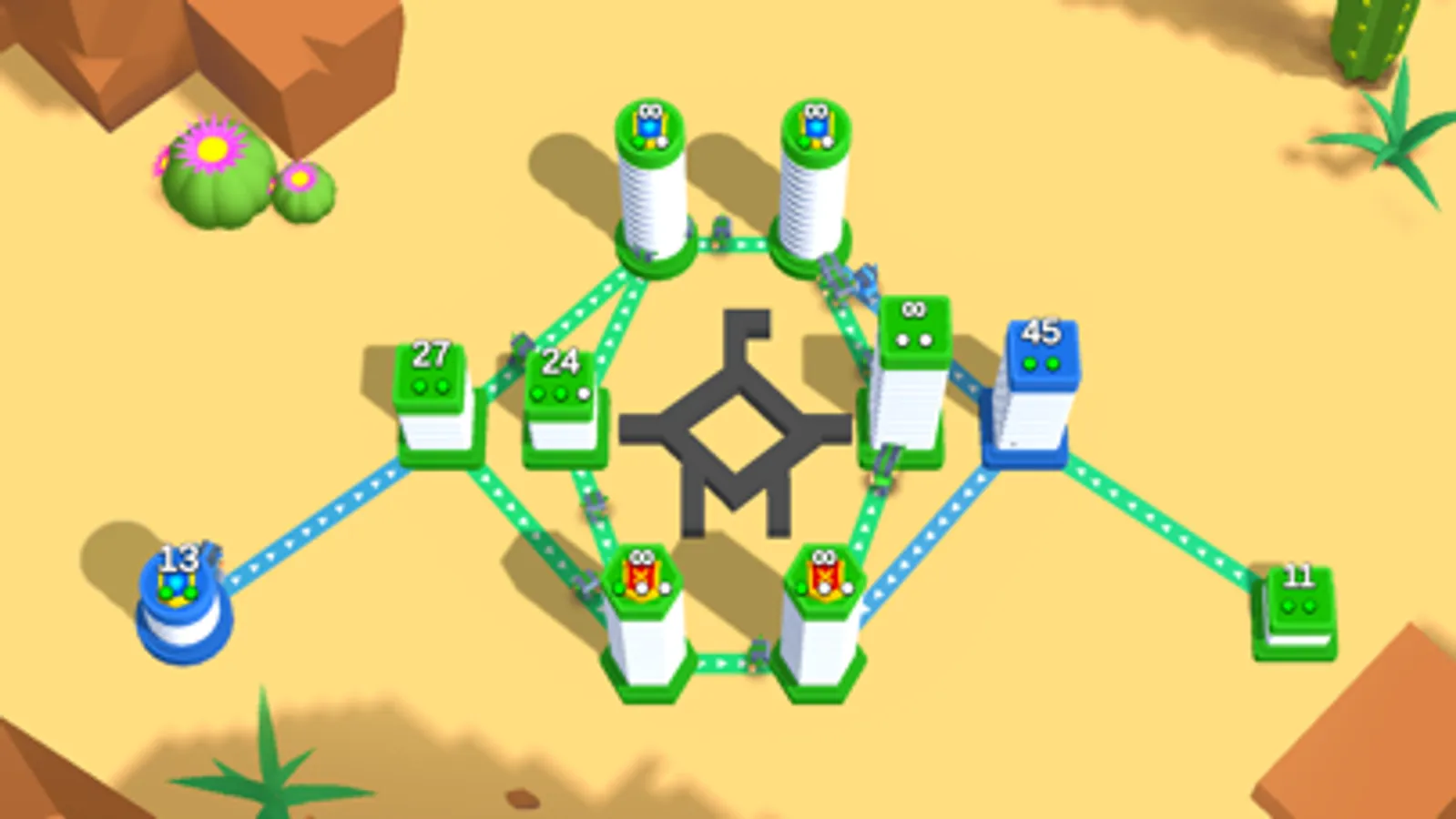 - Strategize your moves and try to take over all the towers. When all the towers are occupied by your men. You win the game.