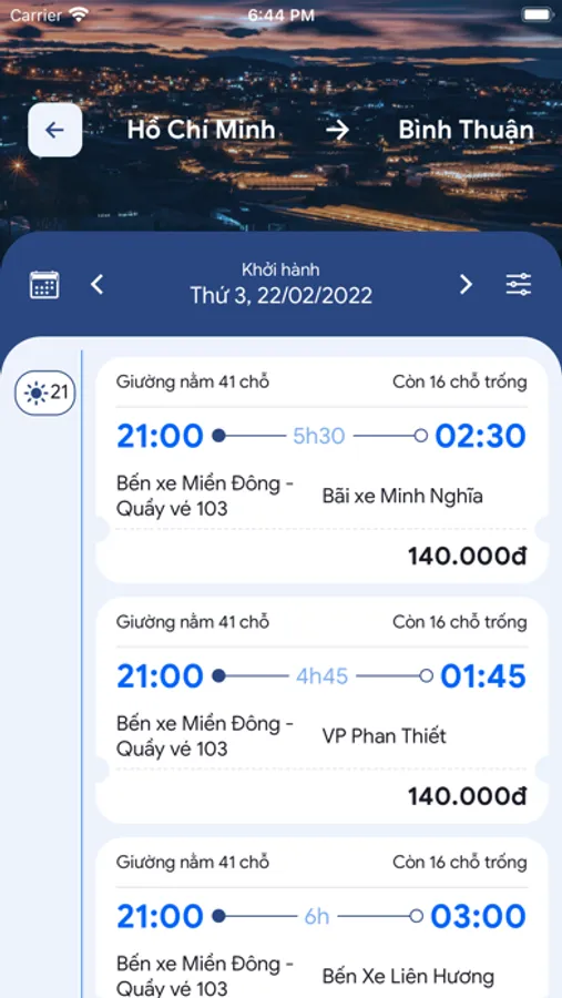- Ứng dụng đặt vé xe của CÔNG TY CỔ PHẦN THƯƠNG MẠI DỊCH VỤ DU LỊCH VẬN TẢI MINH NGHĨA giúp cho hành khách tra cứu thông tin xe trực tuyến đi tuyến TP. Hồ Chi Minh - Bình Thuận mang lại trải nghiệm nhanh chóng và tiện lợi nhất từ việc đặt vé đến sử dụng dịch vụ vận chuyển hành khách.