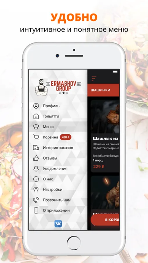Воспользуйтесь удобным приложением для заказа еды «ERMASHOV GROUP».
