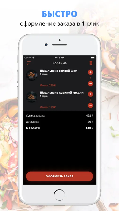 Скачивайте наше приложение, оформляйте заказ и наслаждайтесь любимой едой, где бы Вы ни были! Приятного аппетита!