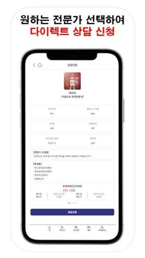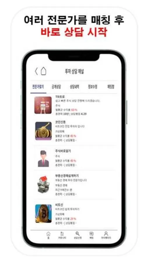 주식, 부동산, 코인, 선물옵션 등 각 분야의 투자고수를 매칭하여 나만의 투자 전문가를 찾아보세요