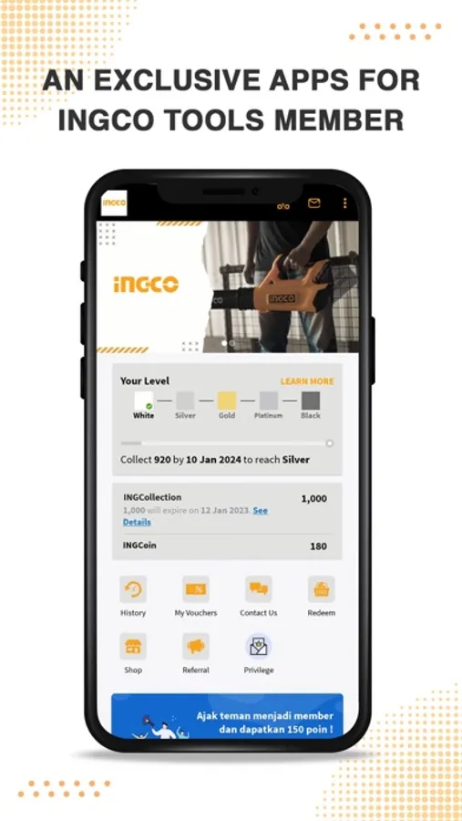 Collect INGCoin from each transaction and exchange with products or vouchers from INGCO Tools Indonesia.