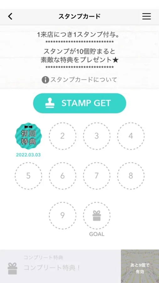 たくさん貯めていただくと次回使える特典をご用意しております。