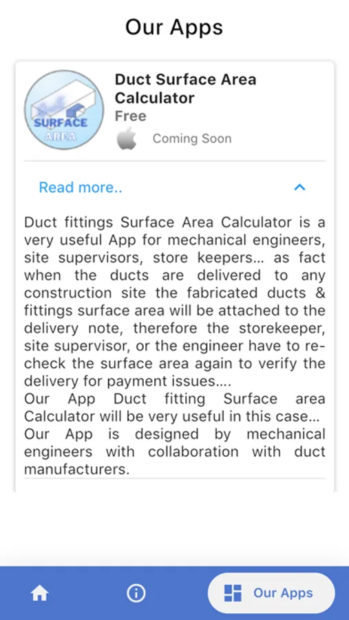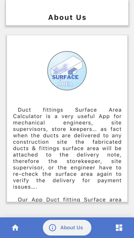 Duct fittings Surface Area Calculator is a very useful App for mechanical engineers, site supervisors, store keepers… as fact when the ducts are delivered to any construction site the fabricated ducts & fittings surface area will be attached to the delivery note, therefore the storekeeper, site supervisor, or the engineer have to re-check the surface area again to verify the delivery for payment issues….