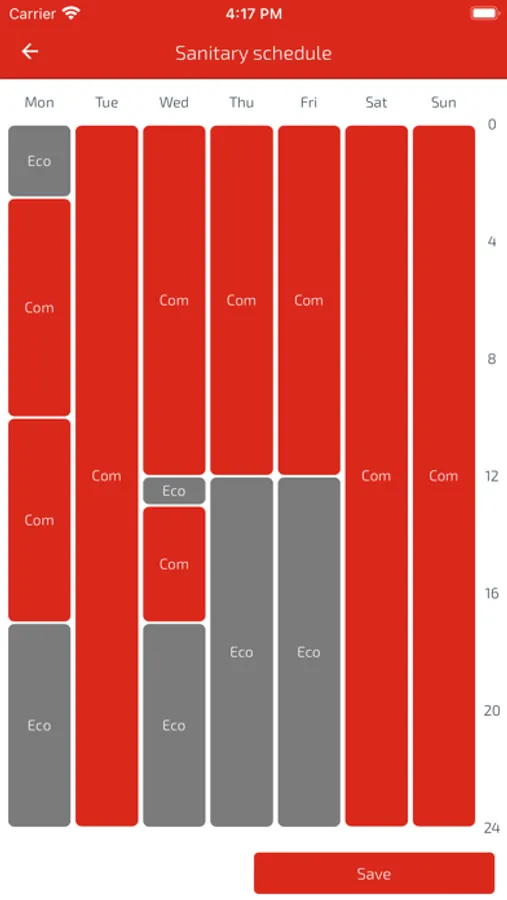 From the programming page it is possible to set the various time slots for heating, cooling and domestic hot water.