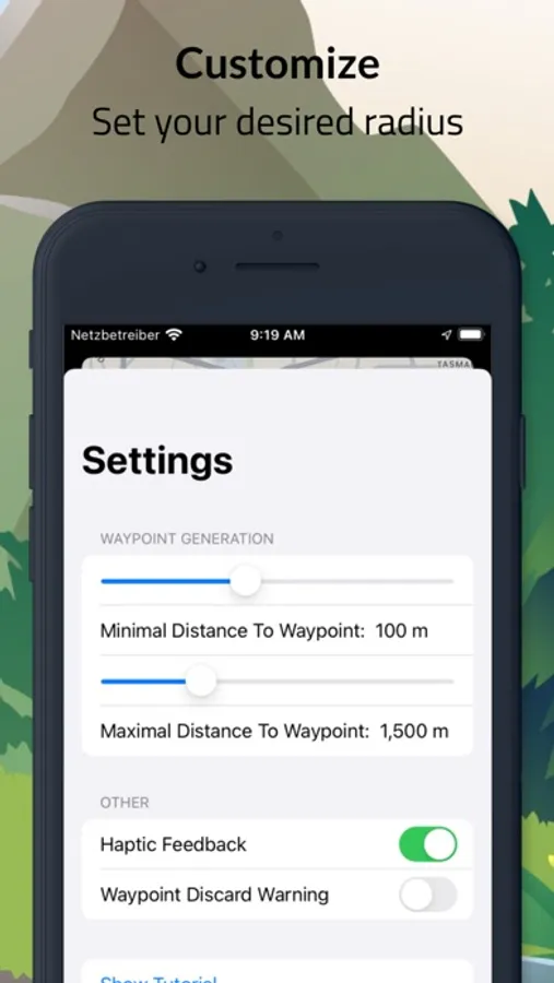 GoRandom also lets you decide how far you want to go. Just set your desired range in the settings and travel exactly how far you want to.