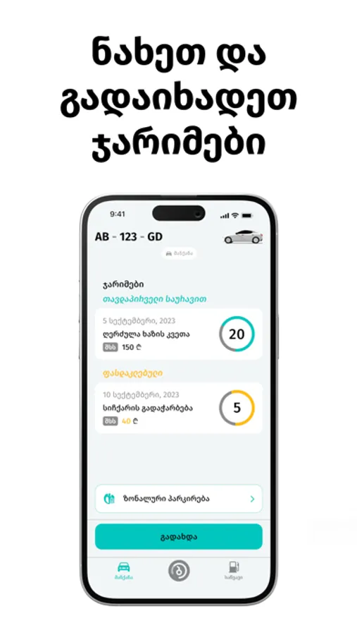 Borbalo also offers other services. For example, you can quickly pay for Zonal Parking with us - in three steps: just choose a car, enter the number of the place and turn it on. You'll pay for parking until you're done parking from the App, and don't worry about being reminded from time to time that you're turned on again.