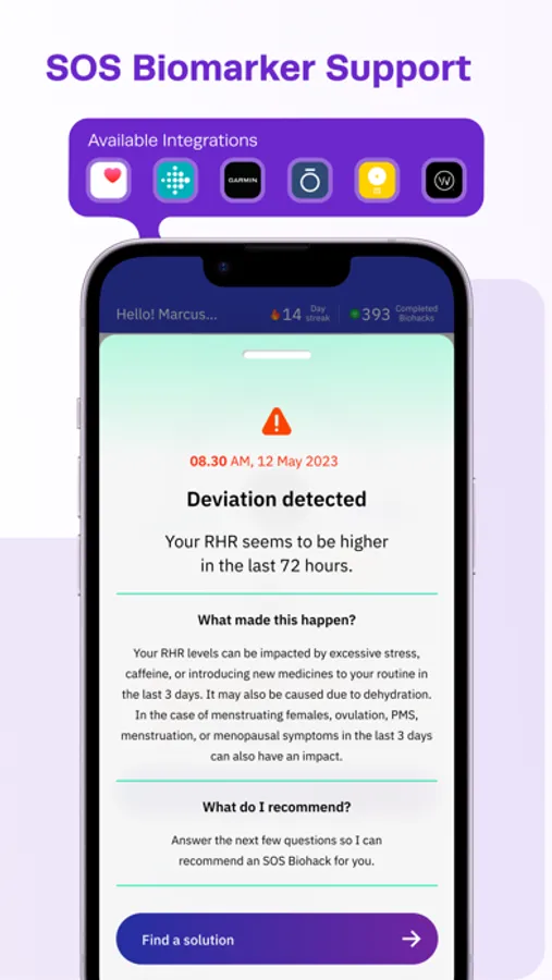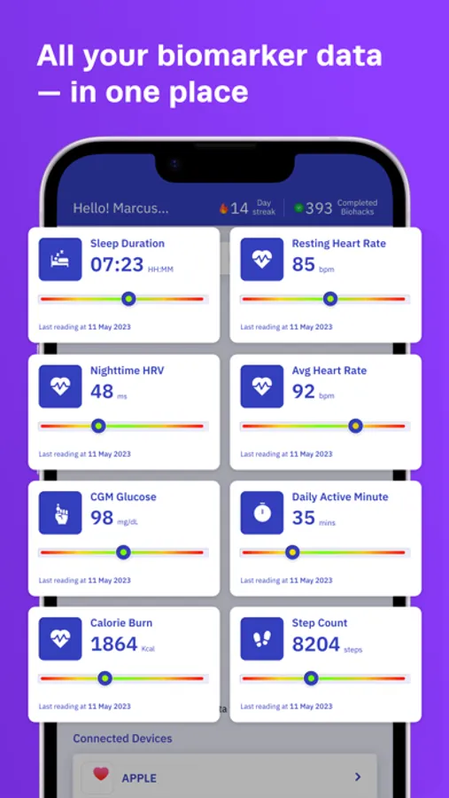- Insights into your wearable data to help you improve your biomarkers long-term