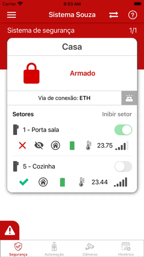 - Realizar ações de segurança como: Arme, Desarme e Arme Interno (Stay) remotamente
