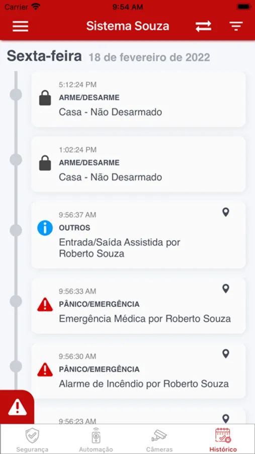 - Ter histórico completo das ações e eventos do monitoramento do imóvel