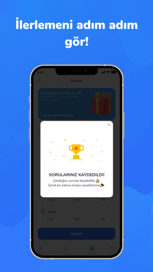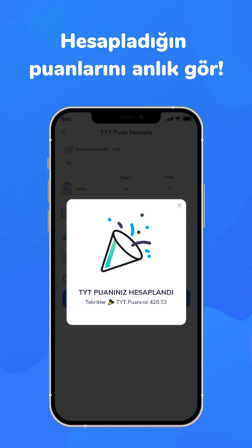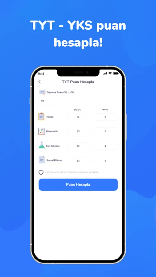 Çözdüğün denemelerin puanlarını hesaplayabilirsin, bu sayede ilerlemeni çok daha verimli bir şekilde takip edebilirsin.