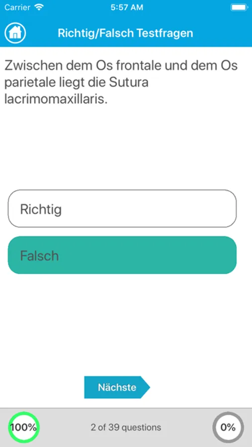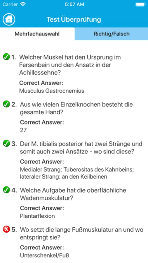 - Es gibt 2 Quiz-Modus. Multiple-Choice Quiz und Richtig/Falsch Quiz.