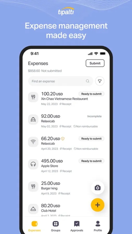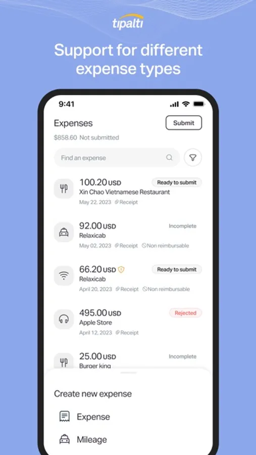 With the Tipalti Expenses mobile app, employees and expense approvers can: