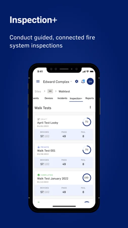 Connected Safety+ offers a suite of connected services for Commercial Fire Installers and end users that wish to have a connected view of their sites and assets. It provides instant access to the Fire Systems history, service events, and health. Advanced reports and inspections tools also make ConnectedSafety+ the perfect tool to drive efficiencies in service.