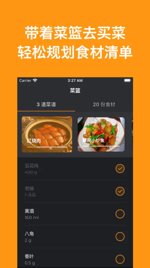 ■ 菜篮:将您最喜欢的菜谱所需的食材加入菜篮,并携带厨易应用程序与您一起购物;它会提醒您需要购买什么以及它们用于什么食谱。你需要帮助吗?你可以随心所欲地与任何人分享您的菜篮。