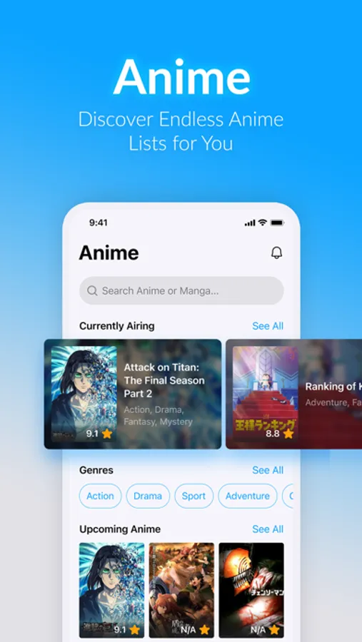 - Never miss any upcoming anime, turn on notification for the anime you're excited for, we will ping you once it is started to air.