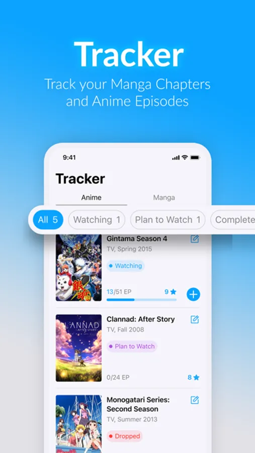 - Stay focused on what matters, never forget what episode or chapters you left last time, add your anime and manga to Tracker, it will save you so much time.