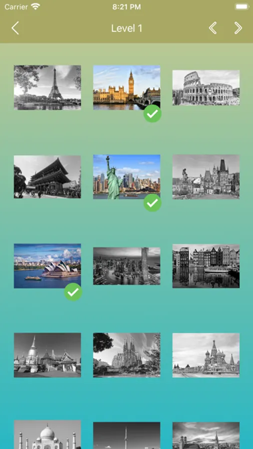• The game has 15 levels and 225 photo questions. Solve them all!