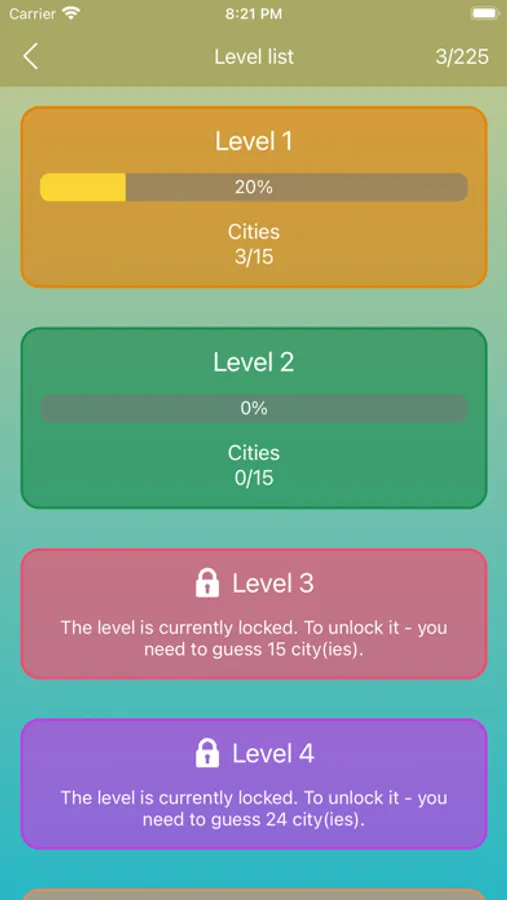 • There are game statistics for each level and for the whole game. Complete everything 100% and become a true expert in geography.