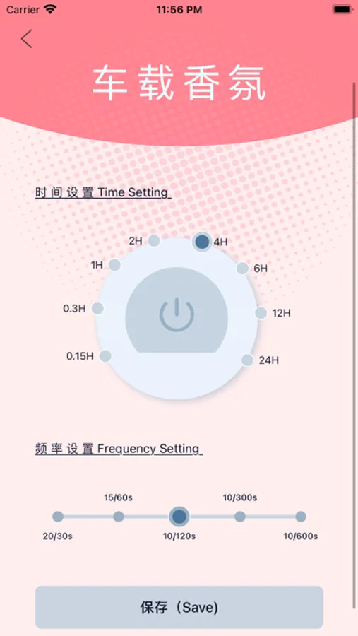 使用车载香氛能控制车载香氛喷香时长,喷香浓度,工作时间,暂停时间,一键定制车内香氛系统