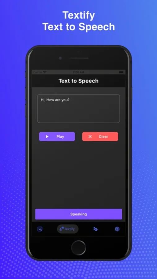 - Textify(Text To Speech) helps the user to create custom sentences & pronounce them