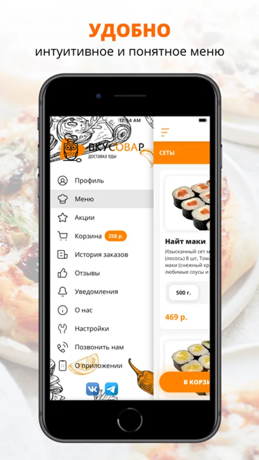 Приложение ВКУСОВАР — это удобный способ заказа готовой еды домой или в офис! Мы готовим наши блюда из качественных свежих ингредиентов и доставляем быстро и бережно.