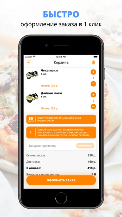 Скачивайте наше приложение, оформляйте заказ и наслаждайтесь любимой едой в удовольствие! Приятного аппетита!