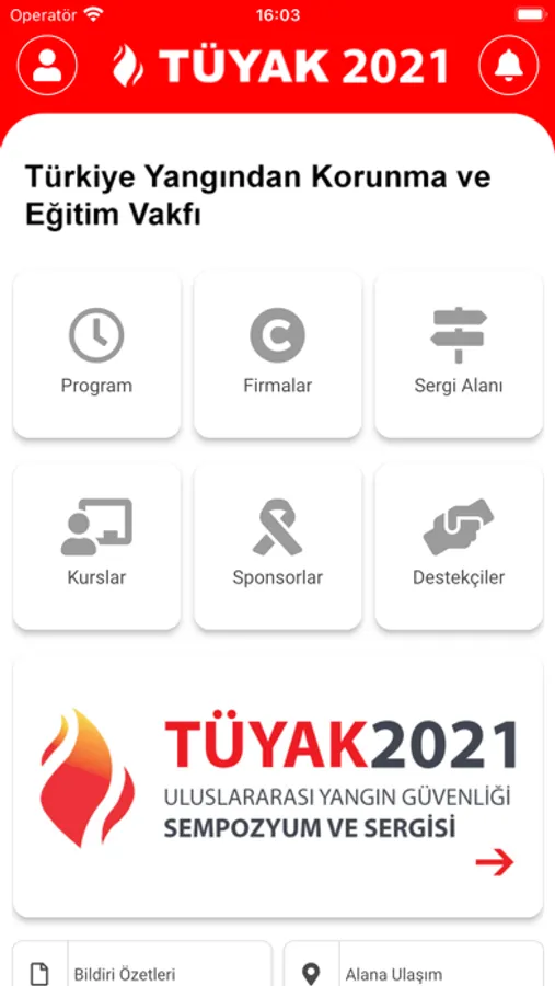 TÜYAK uygulaması ile Türkiye Yangında Korunma ve Eğitim Vakfı’nın düzenlendiği tüm uluslararası sempozyum ve sergileri takip edebilirsiniz.