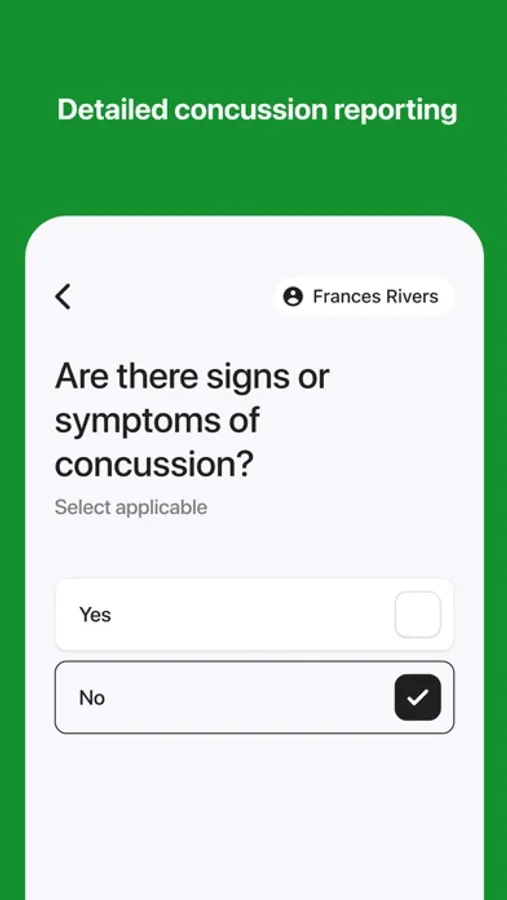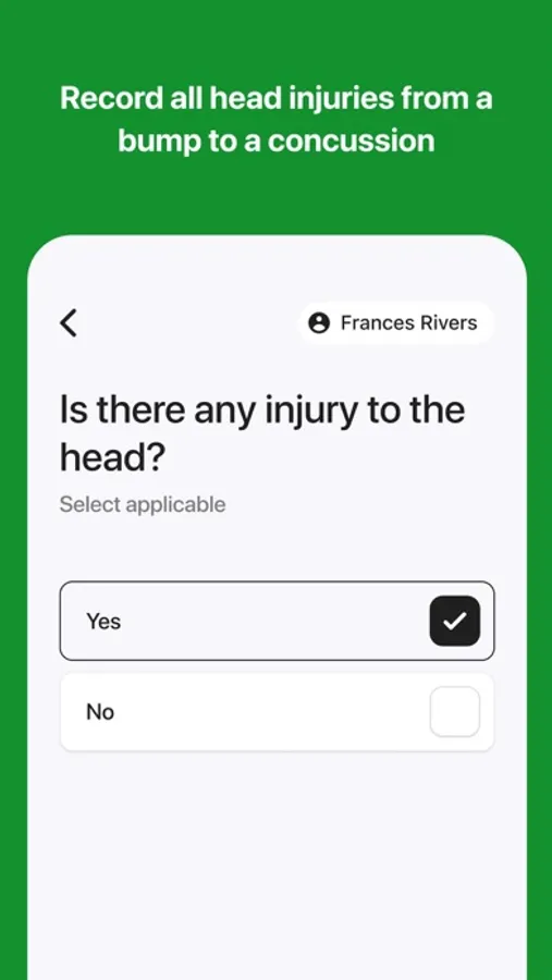 Every single report checks on whether an injury to the head has been sustained; users can record the smallest of bumps to serious signs and symptoms of concussion.