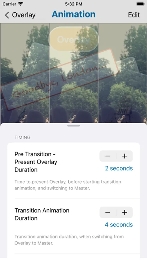- Set and plan the transition timing, order and animation between the Overlay to Master.