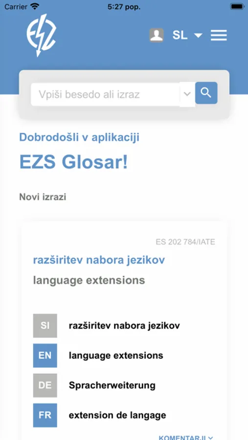 Pred vami je slovar tehniškega besedja kot priporočilo EZS. Slovar se je razvijal in nadgrajeval več let in je narasel v zbirko, ki vsebuje več kot 16.000 slovenskih izrazov. Slovar se enkrat tedensko nadgrajuje in popravlja.